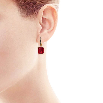 Серьги из желтого золота с бриллиантами, рубинами
