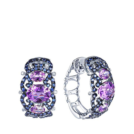 Серьги из белого золота с бриллиантами, сапфирами, аметистами