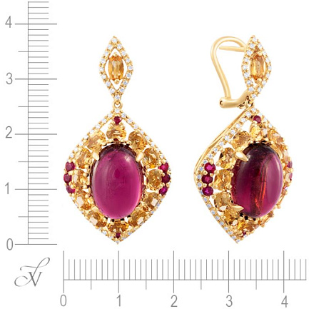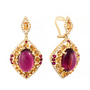 Серьги из желтого золота с бриллиантами, рубинами