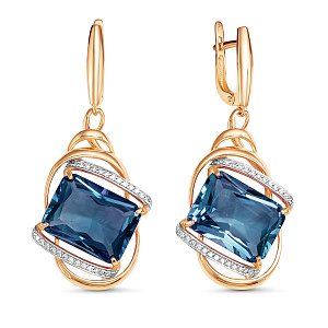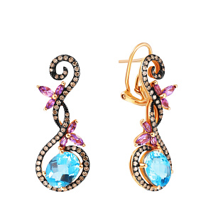 Серьги из красного золота с бриллиантами, аметистами, топазами