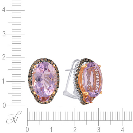Серьги из комбинированного золота с бриллиантами, аметистами