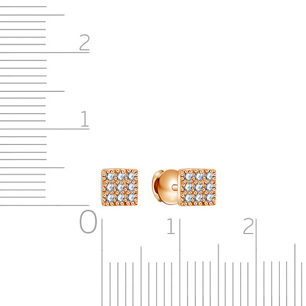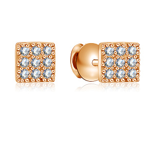 Пусеты из красного золота с фианитом