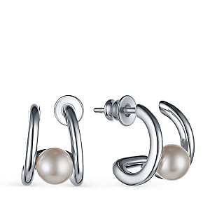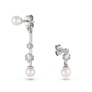 Пусеты из серебра с фианитами, жемчугами