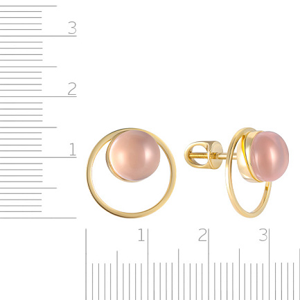 Пусеты из желтого золота с кварцем