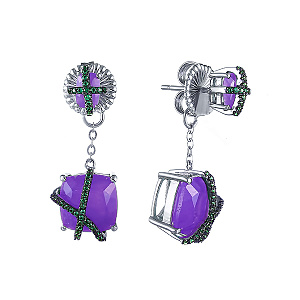 Пусеты из серебра с халцедонами, фианитом