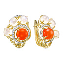 Серьги с английским замком из желтого золота с бриллиантами, лунными, сердоликами