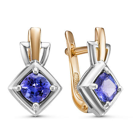 Серьги с английским замком из комбинированного золота с танзанитом