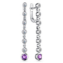Серьги с английским замком из серебра с аметистами, фианитами