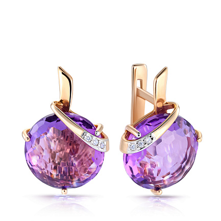 Серьги с английским замком из красного золота с аметистами