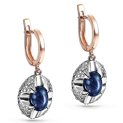 Серьги с английским замком из красного золота с бриллиантами, сапфирами
