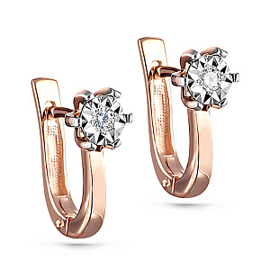 Серьги с английским замком из красного золота с бриллиантами