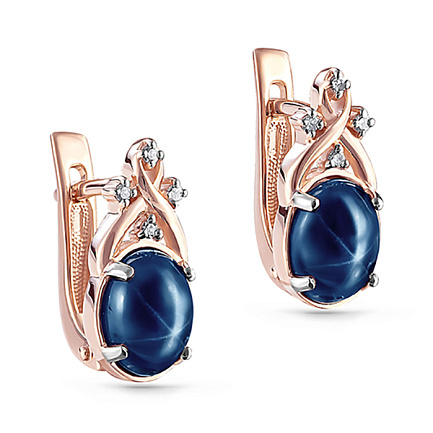 Серьги с английским замком из красного золота с бриллиантами, сапфиром
