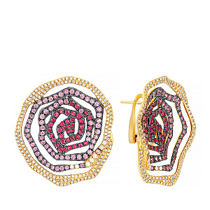 Серьги с английским замком из красного золота с бриллиантами, шпинелями