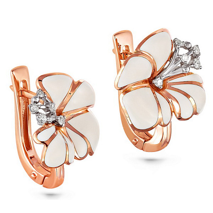 Серьги с английским замком из красного золота с бриллиантами
