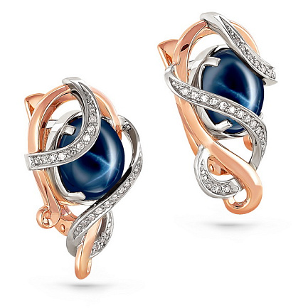 Серьги с английским замком из красного золота с бриллиантами, сапфирами