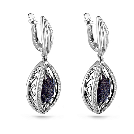 Серьги с английским замком из серебра с авантюринами, фианитами