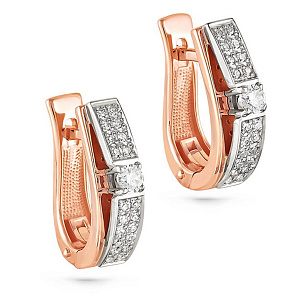 Серьги с английским замком из красного золота с бриллиантами