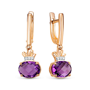 Серьги с английским замком из красного золота с бриллиантами