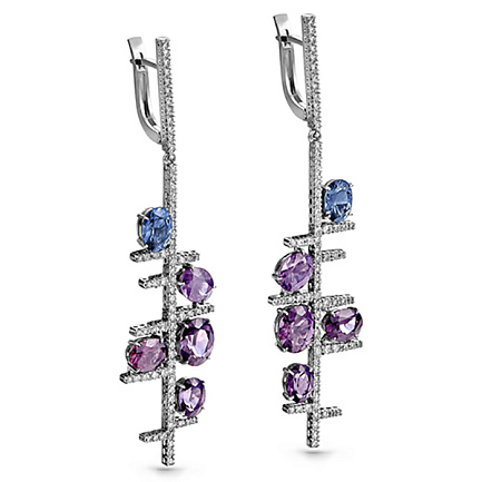 Серьги с английским замком из белого золота с шпинелями, бриллиантами