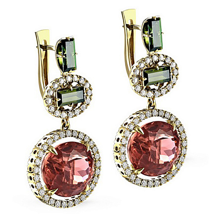 Серьги с турмалином, бриллиантами с английским замком из желтого золота
