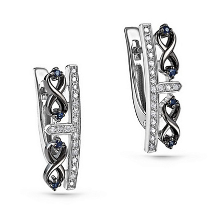 Серьги с английским замком из белого золота с бриллиантами, сапфирами
