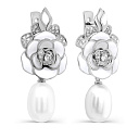 Серьги с английским замком из белого золота с бриллиантами, жемчугами