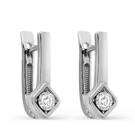 Серьги с английским замком из белого золота с бриллиантами