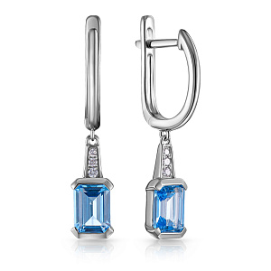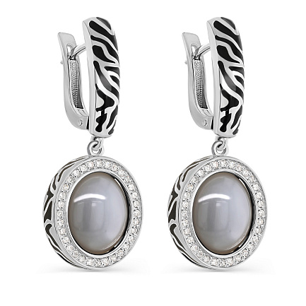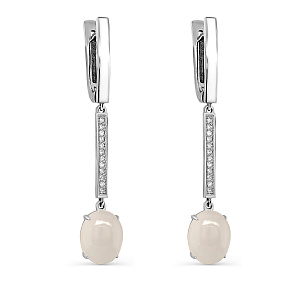 Серьги с английским замком из белого золота с бриллиантами, лунными