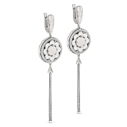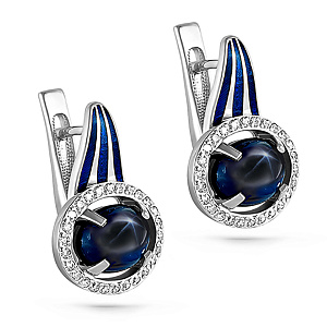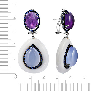 Серьги с агатом, бриллиантами из белого золота с английским замком