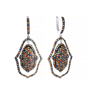 Серьги с английским замком из серебра с фианитами, цитринами
