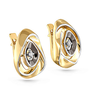 Серьги с английским замком из желтого золота с бриллиантами