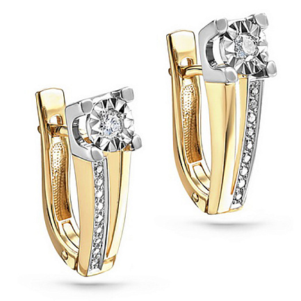 Серьги с английским замком из желтого золота с бриллиантами