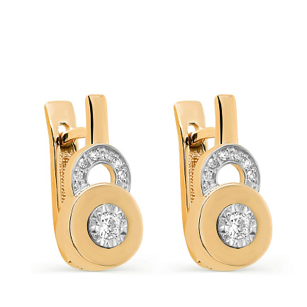 Серьги с английским замком из желтого золота с бриллиантами