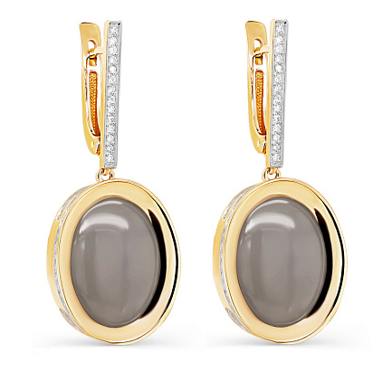 Серьги с английским замком из желтого золота с лунными, бриллиантами