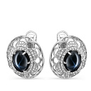 Серьги с английским замком из серебра с фианитами, сапфирами