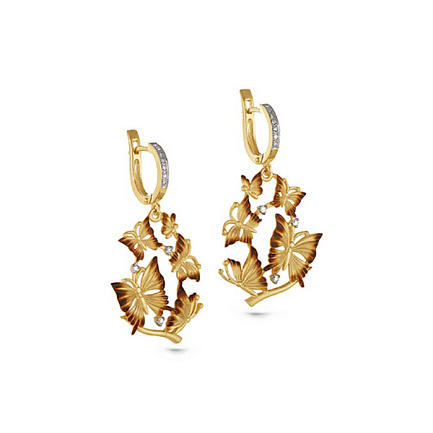 Серьги с английским замком из желтого золота с бриллиантами