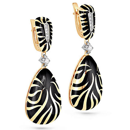 Серьги с английским замком из желтого золота с бриллиантами