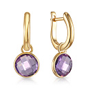 Серьги с английским замком из желтого золота с аметистом