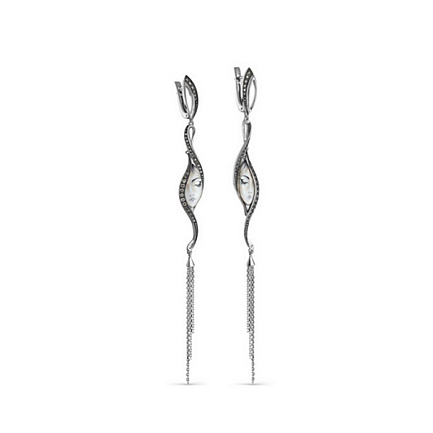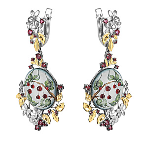 Серьги с английским замком из белого золота с бриллиантами, финифтями