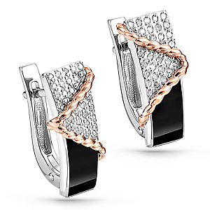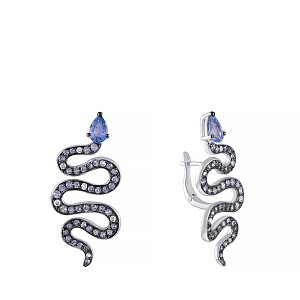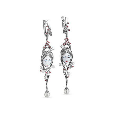 Серьги с английским замком из белого золота с бриллиантами, топазами, жемчугами, финифтями