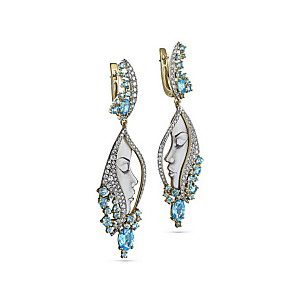 Серьги с английским замком из желтого золота с бриллиантами, топазами, финифтями