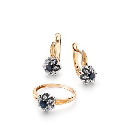 Серьги с английским замком из красного золота с бриллиантами, сапфирами