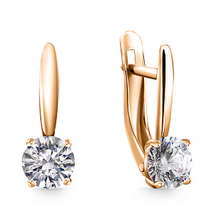 Серьги с английским замком из красного золота с фианитом