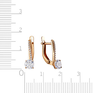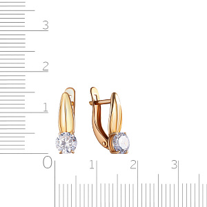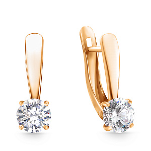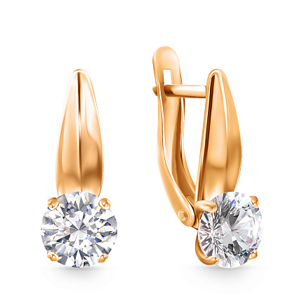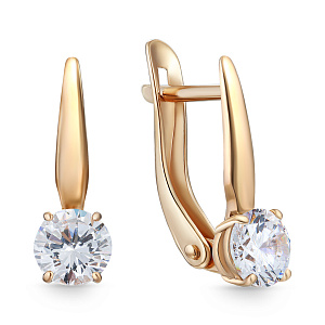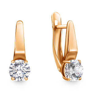Серьги с английским замком из красного золота с фианитом