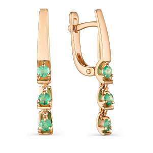 Серьги с английским замком из красного золота с изумрудами