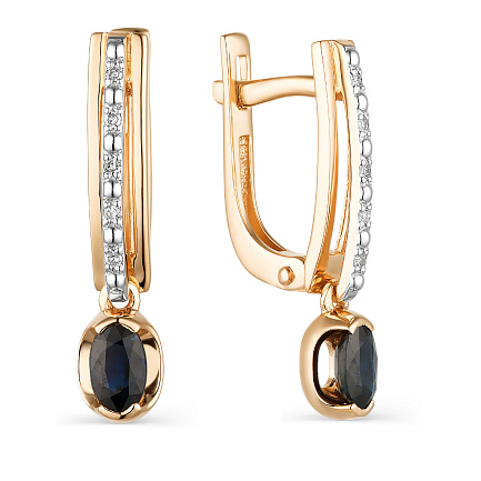 Серьги с английским замком из красного золота с сапфирами, бриллиантами