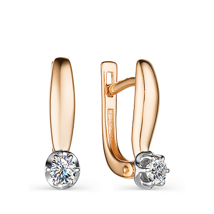 Серьги с английским замком из красного золота с бриллиантами