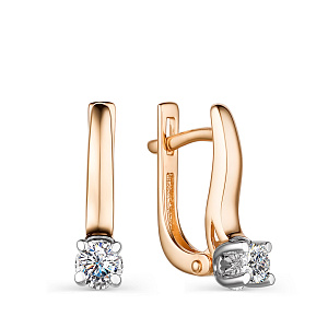 Серьги с английским замком из красного золота с бриллиантами