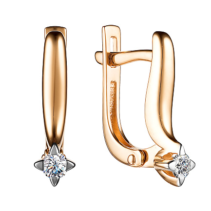 Серьги с английским замком из красного золота с бриллиантами