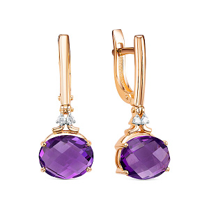 Серьги с английским замком из красного золота с бриллиантами